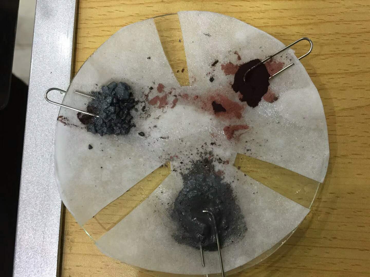 高2019级10班田堃呈、赵乐颜同学在学习原电池之后,根据老师上课的实验和教材实验,从节约药品的角度出发,设计滤纸原电池,将铁粉、铜粉、锌粉放置在滤纸上,用回形针固定,并充当电极,连接导线和电流表,通过滴加稀硫酸溶液形成闭合回路,制备出微型原电池,不仅方便替换为不同的原电池,还能进行原电池形成条件的探究,一举多得!让在场的化学老师们都眼前一亮,纷纷称赞这一实验设计甚至达到了学术论文的水平!