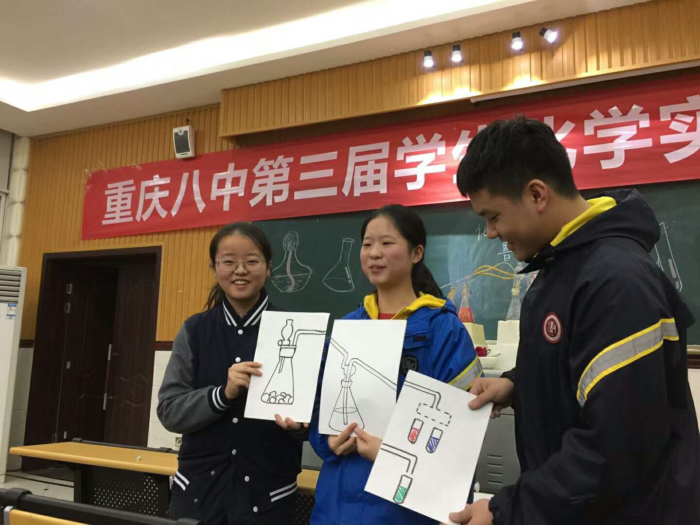 2018年1月5日,新年的第一周的周五,重庆八中第三届学生化学实验创新大赛终于落下帷幕。高二年级的同学们在层层比赛环节的考验下,通过激烈的角逐,最终有30组同学获得了决赛资格。这30组同学逐一上台展示自己设计的实验,组内同学相互配合,解说原理、探究实验、展示成果,想象力丰富,思维天马星空,让在座的同学们收获颇丰,也让老师们感慨不已。