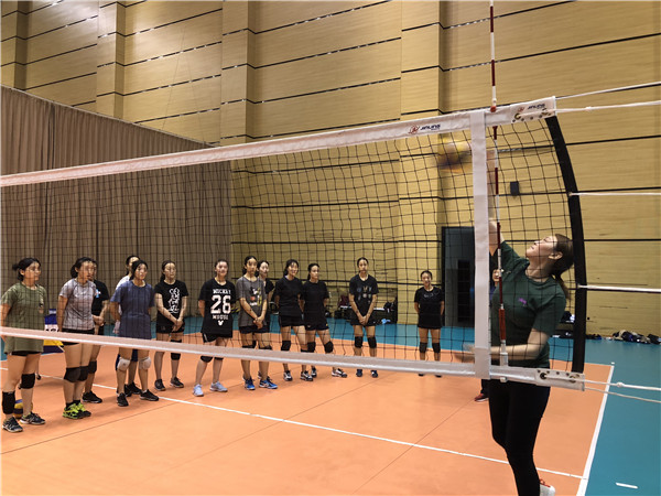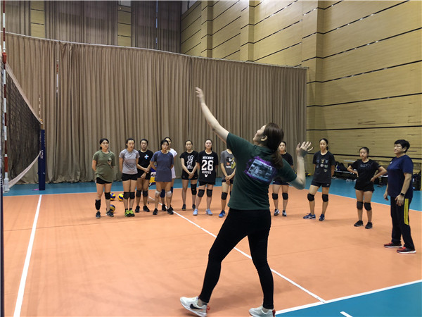 当天下午,王一梅在我校渝北校区校长杨华及全体女排教练的陪同下参观了美丽的八中校园。下午五点过后,王一梅来到排球馆,观看我校女排队员的日常训练,并亲自对我校女排队员的扣球进行指导。