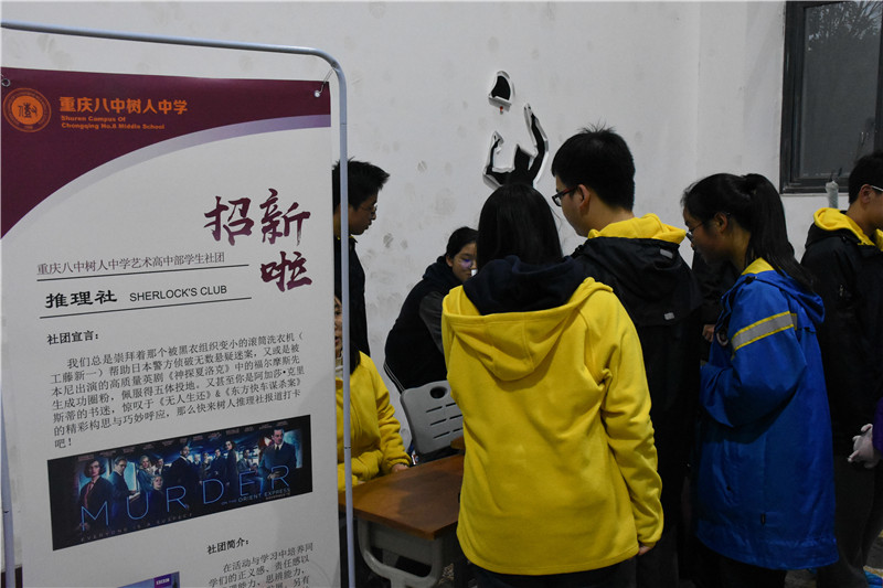 为发展学生兴趣爱好,创建有生气、有活力的校园氛围,弘扬八中特色社团活动,2018年11月16日,重庆八中树人艺术高中举行了第一届社团招新活动。