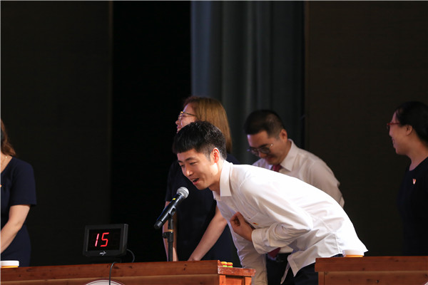 重庆八中党委副书记王怒涛宣读表彰决定,对4个优秀党支部、10名优秀党务工作者和90名优秀党员同志予以表彰,并对“党性知识竞赛”获奖支部予以鼓励。随后,来自宏帆中学初2018级支部的夏小利老师代表优秀党支部发言,她以《一个支部就是一个战斗堡垒》为题列举了身边优秀党员的感人事迹。