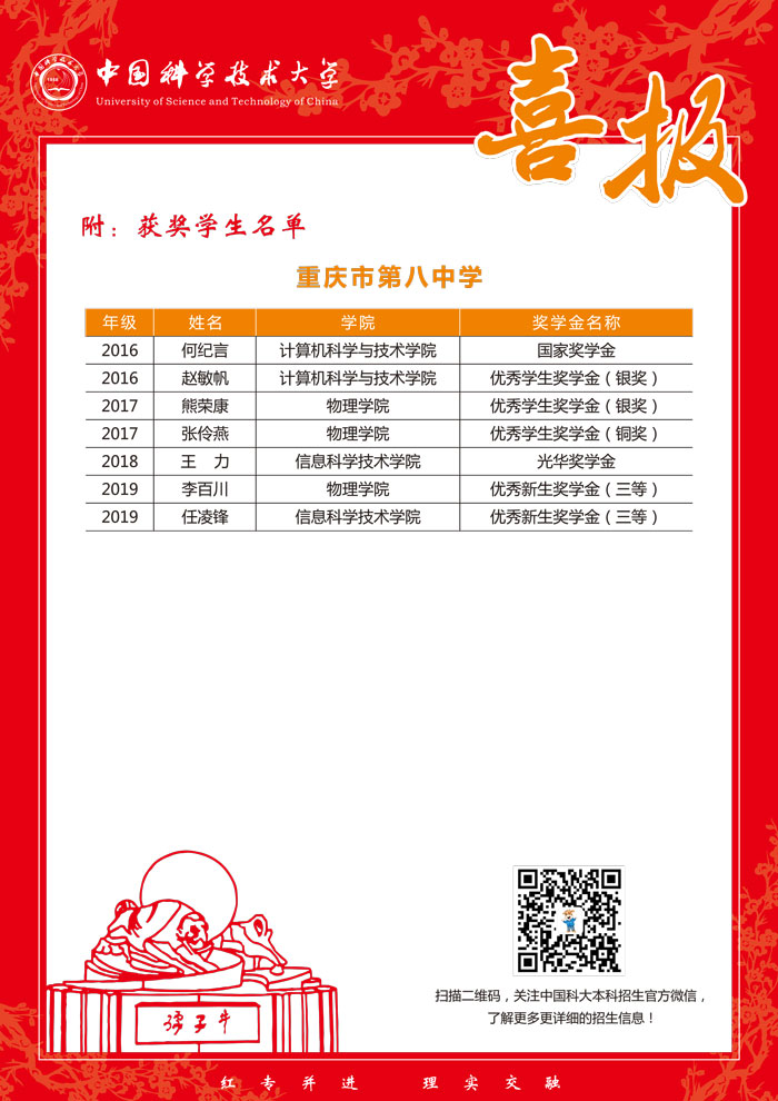 中科大:祝贺八中校友在中国科技大学获多项奖励