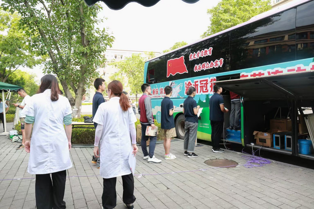 医务室还制定了应急处置方案,假设接种者出现疫苗接种部位红肿、硬结等一般不良反应时,由医疗保障组工作人员现场及时对症处置;当接种者出现严重异常反应时,由120救护车转至新冠病毒疫苗异常反应定点救治医院(重医大附三院、区人民医院、区二院)进一步治疗。