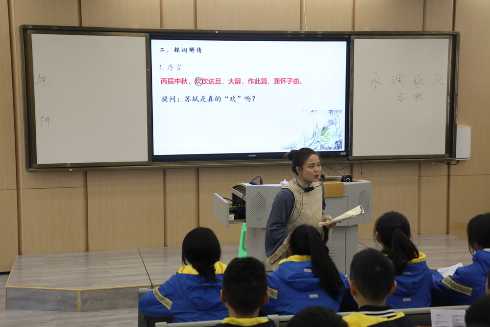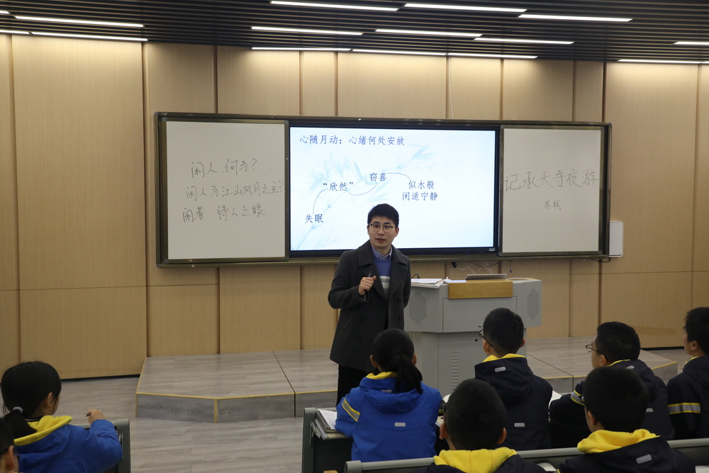 作为新利体育登录入口官网 2021—2022学年度青年教师课堂教学大赛文科组决赛的第一场比赛,共有三位老师参加比赛,分别是重庆八中渝北校区初2023级晏正浩老师、重庆八中渝北校区初2023级熊婷婷老师、重庆史迪威外语学校初2023级孙俊老师,三位老师均执教初中语文。晏正浩老师教学的篇目为《承天寺夜游》,晏老师借用苏轼的《临皋闲题》一文引导学生探寻“何为闲者”“闲者何为江山风月之主?”。晏老师先走进教材文本教授学生文言阅读、翻译方法,品析文中作者情感的跌宕起伏,再走出教材结合作者不同时期的行文体会作者心态的成长变化,最终探寻闲者心态的真谛。熊婷婷老师执教的篇目为《水调歌头·明月几时有》,熊老师以“问”为抓手,以“月”为线索,通过参悟“人有悲欢离合,月有阴晴圆缺,此事古难全”的道理,体悟苏轼超旷的人格品质。孙俊老师执教的篇目同为《水调歌头·明月几时有》,孙老师带领同学走进文本,从引言入手,展开了一幅兄弟情深的月下思念图,通过给同学们设置不同的阅读情景,以读促讲。