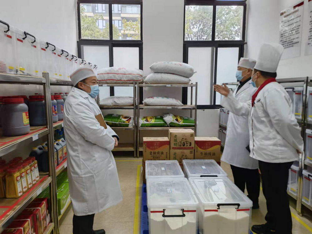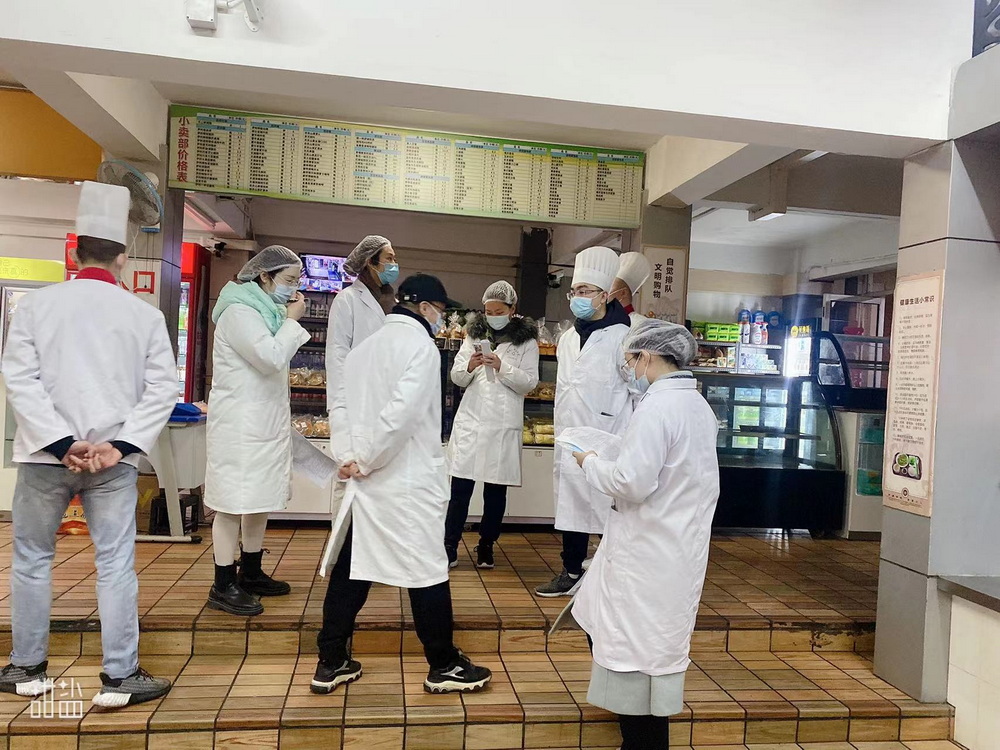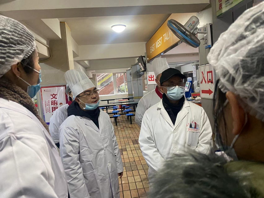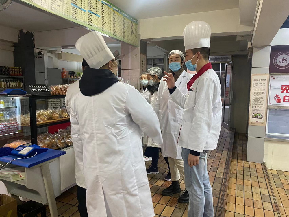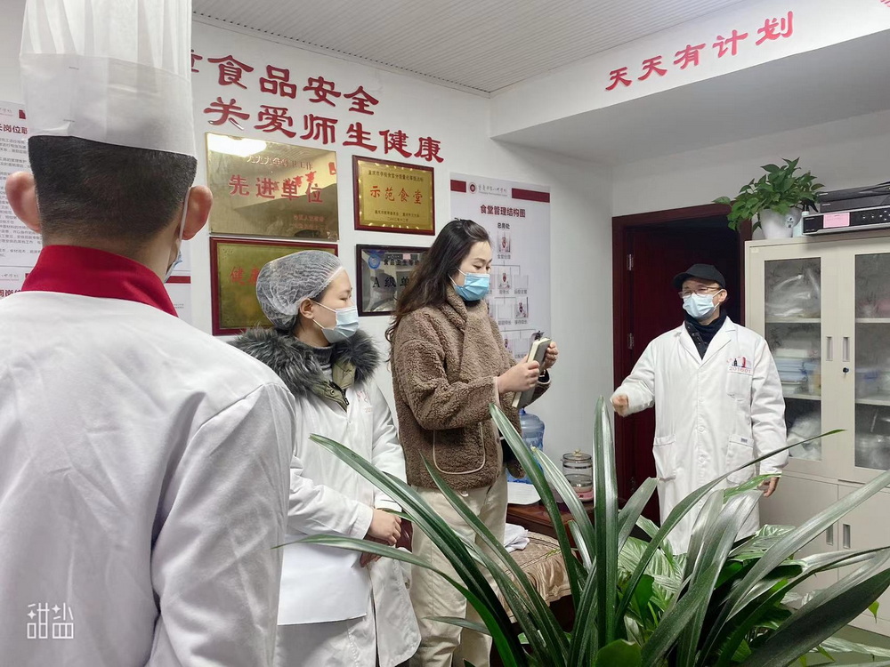2022年1月13日,副校长曾奇、总务处主任赵呈学、总务处副主任张峻铭、医务室主任任萍带领医务室组员及后勤食堂管理人员,分别对渝北校区、沙坪坝校区食堂食品全卫生检查,严格规范食堂留样,定期检查,做好记录,严禁“三无”食品,过期食品,假冒伪劣食品进入学校食堂和商店。并强化食堂加工操作的规范性,严禁出售过夜剩饭菜等,严格清洗消毒餐具和食堂容器。努力做到让师生吃的放心,让家长安心。