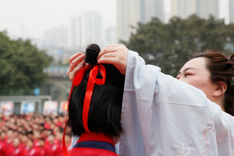 本次活动以“志学·向未来”为主题,分为三个篇章:有志于学,不忘初心;行志于学,砥砺奋进;圆志于学,奔向未来。20班朱丽桥同学的《相约•织梦》深情讲述过去近三年来在宏帆经历的在校生活。全体同学跟随教师艾颖的讲解,观看视频,一起行十五岁“志学”之礼。艾颖重点讲解着汉服原因、志学礼也就是及笄礼和束发礼的意义。随后,艾颖、赵宇红、盖彦华三位教师做示范,分别为八位同学行志学礼,各班同学行志学礼。