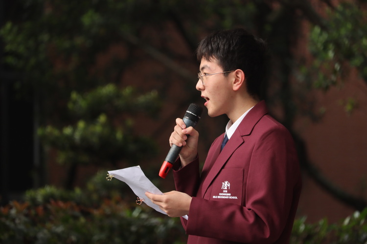 4月18日上午,为更好帮助同学们备考半期考试,在高2023级20班杨昊汶同学的主持下,重庆八中沙坪坝校区第十周朝会以“期中考试动员”为主题准时召开。