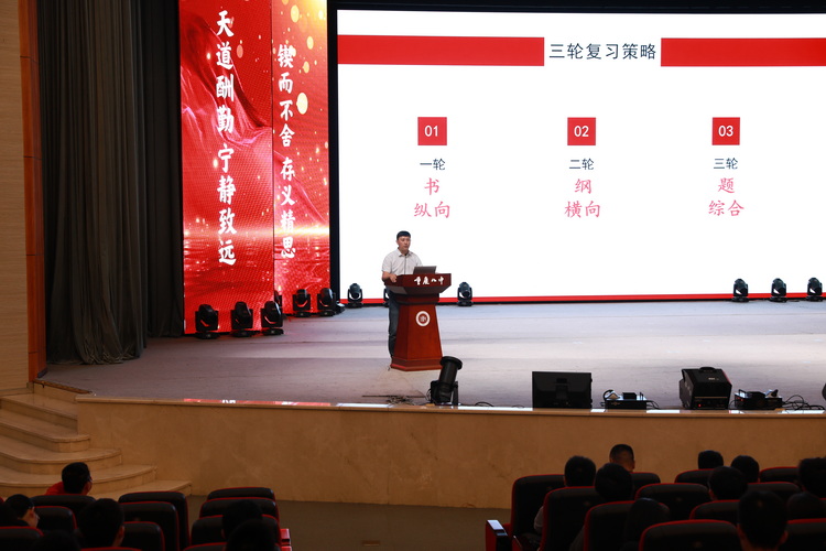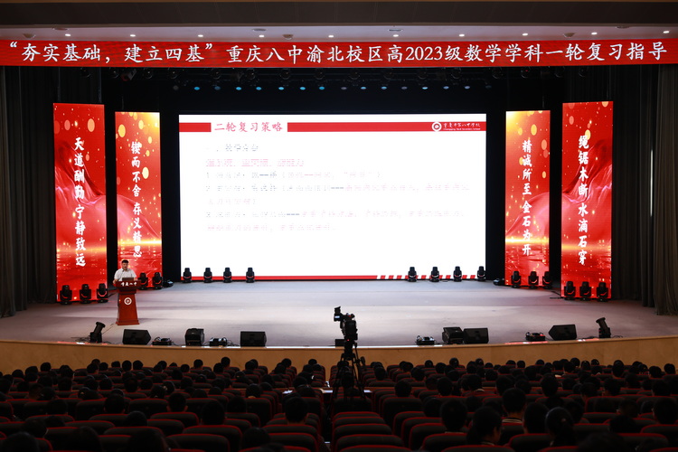 为扎实开展一轮复习工作,提升一轮复习实效,提高备考的规范度、科学度、精准度,2022年5月22日晚9点,渝北校区高2023级在大礼堂成功举办了数学学科一轮复习指导大会。本次大会由数学备课组组长傅小利老师主持,教务处副主任苑繁宝老师主讲。高2023级全体班主任、学生、数学组全体教师参加此次大会。