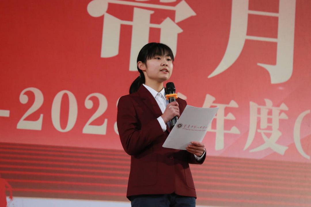 接着,由高二2班吴一凡作为学生代表,对自己在寒假中所遇见的美好进行解读。在刚刚过去的春节假期中,他深刻感受到劳动最光荣,通过在家里大扫除、采办年货、准备年夜饭等诸多家庭活动,不仅为家庭出了一份微薄之力顺便还完成了学习任务,同时也在劳动的过程感受到了存在的价值和劳动的意义。