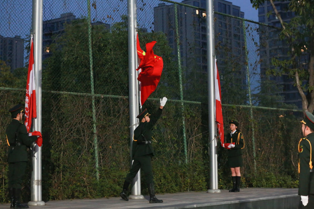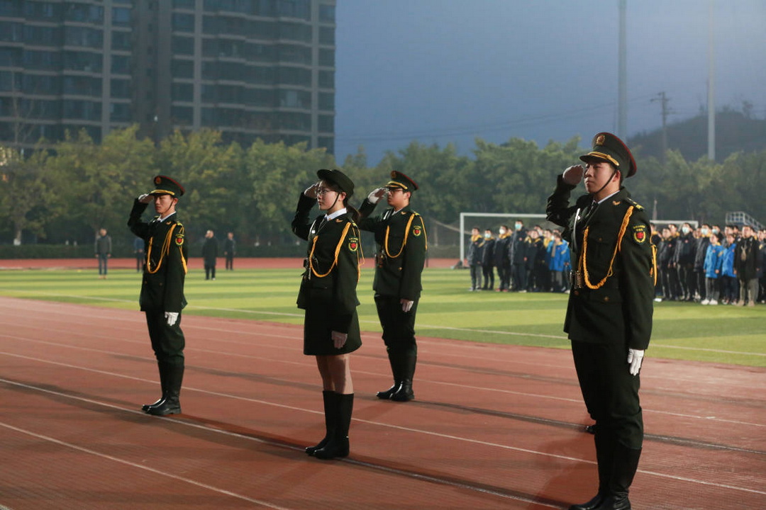 典礼由高一5班谭钧元、高一3班周锡桐2名同学主持,首先进行了庄严肃穆的升国旗、升校旗仪式。