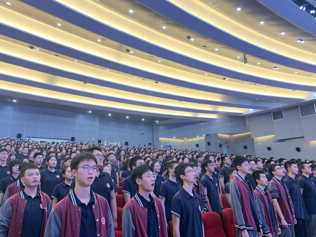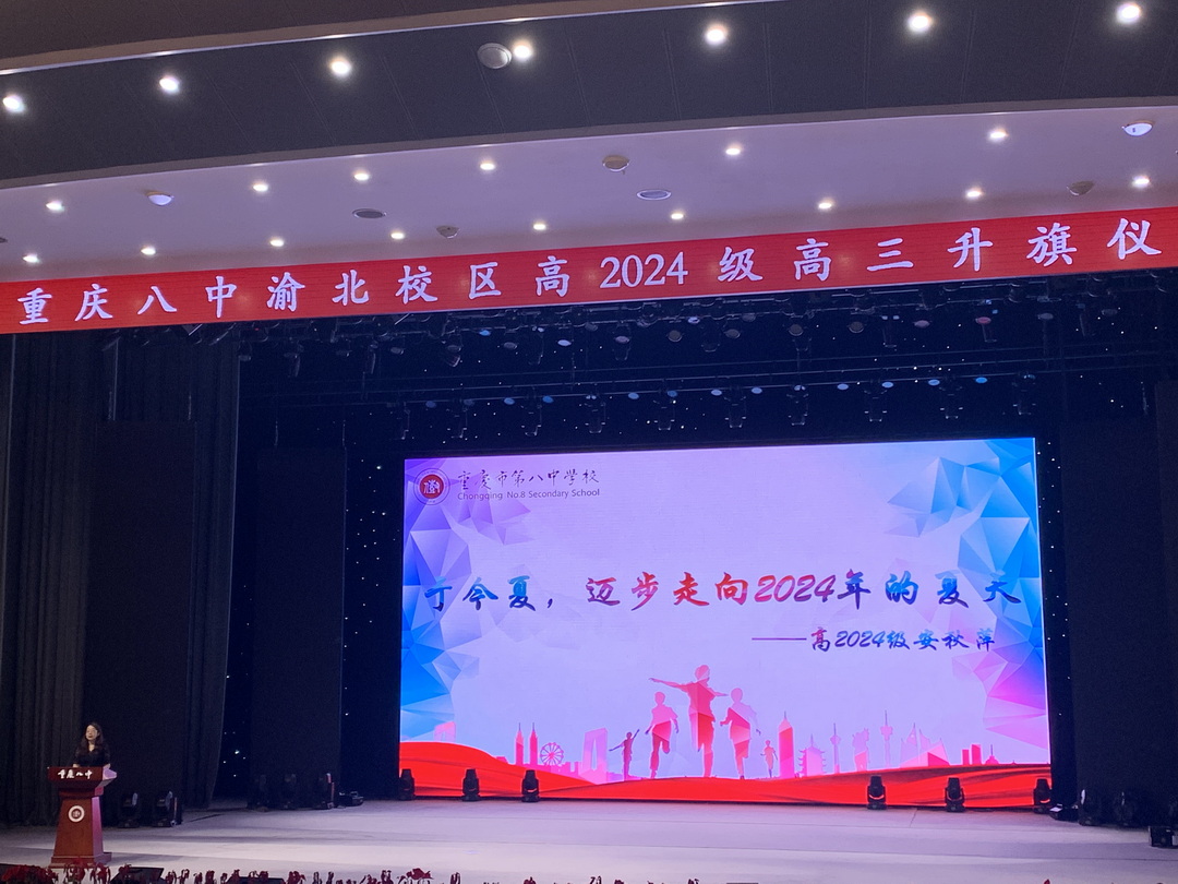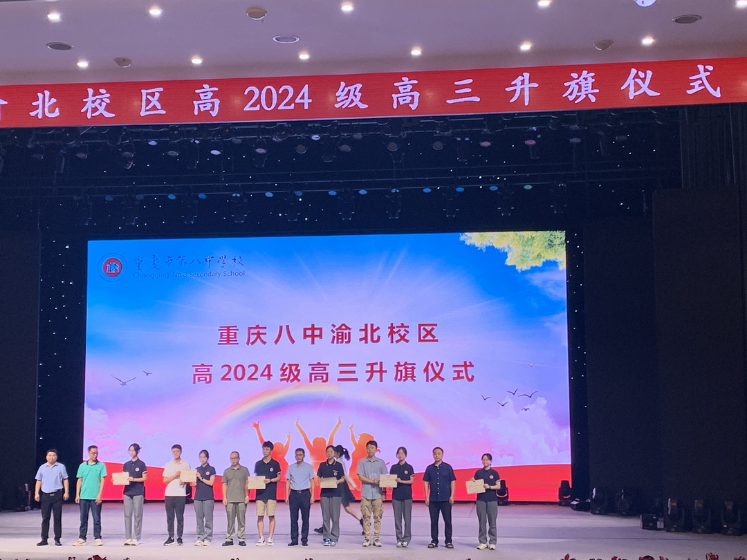 7月17日早晨,重庆八中渝北校区高2024级全体师生齐聚大礼堂,迎来了第三周的升旗仪式。随着激昂的《义勇军进行曲》和朝气蓬勃的校歌的奏响,师生全体肃立致礼,附声合唱。