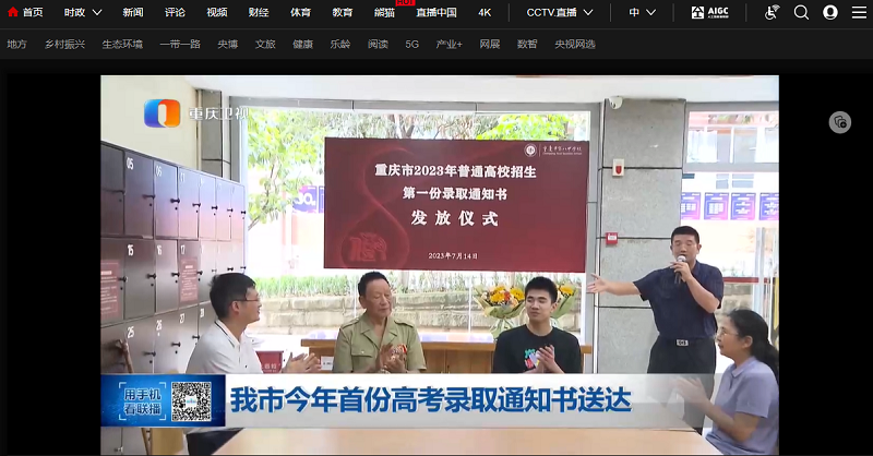 重庆新闻联播——我市今年首份高考录取通知书送达