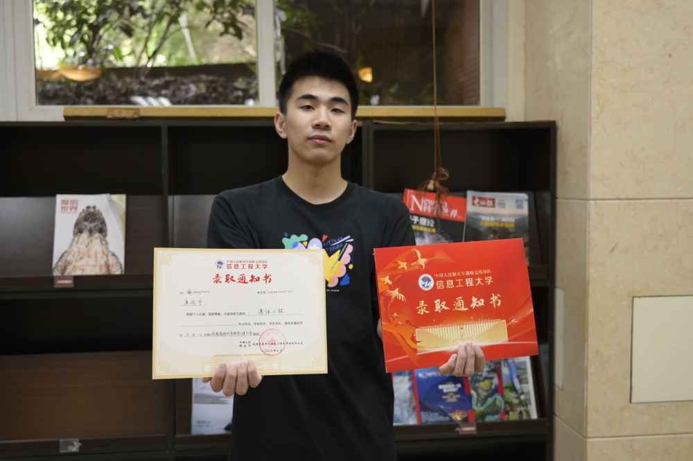 在今年的高考中,唐浚宁以物理类624分的成绩,被中国人民解放军战略支援部队信息工程大学通信工程专业录取。