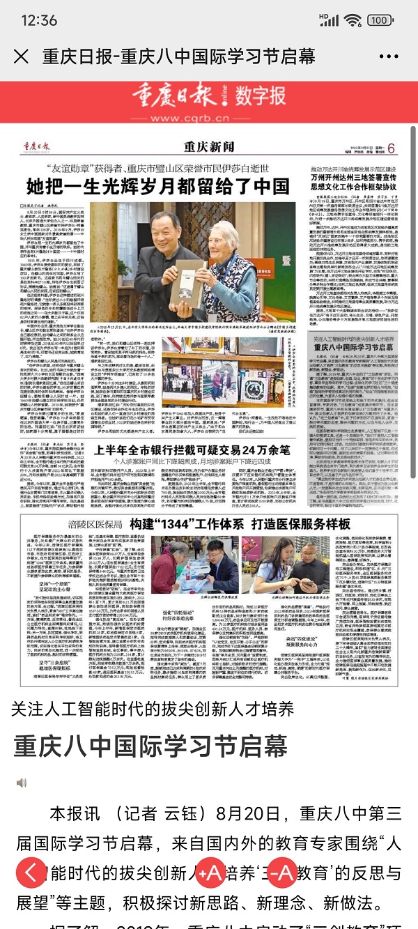 本报讯 (记者 云钰)8月20日,重庆八中第三届国际学习节启幕,来自国内外的教育专家围绕“人工智能时代的拔尖创新人才培养‘三创教育’的反思与展望”等主题,积极探讨新思路、新理念、新做法。