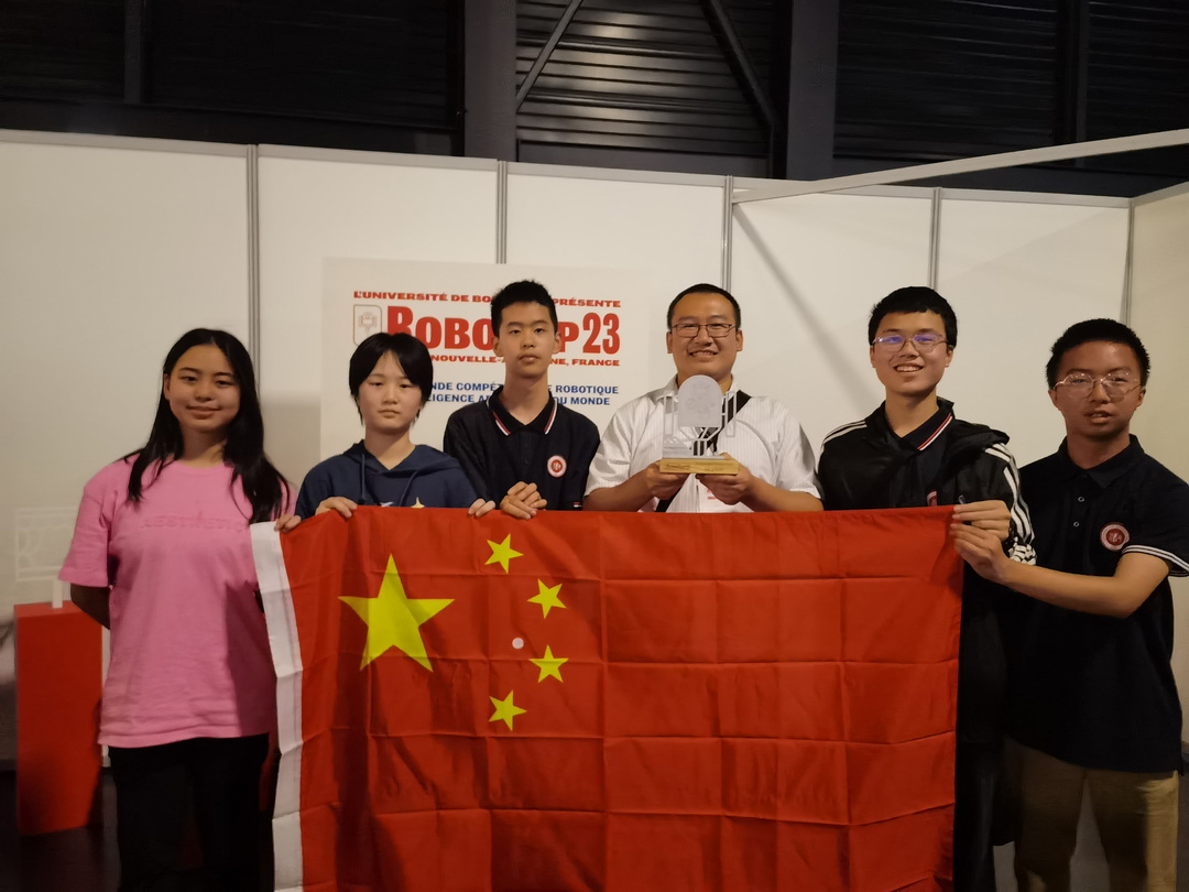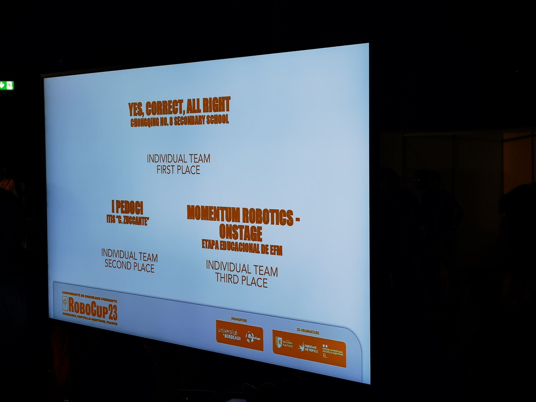 2023年7月4日-10日,重庆八中机器人团队作为中国区代表队参加了在法国波尔多博览中心举办的RoboCup Junior机器人世界杯比赛,八中学子刘玙童、吕明阳、唐崧耀、彭楚寻、刘雯萱参加了Onstage舞台表演赛项。在这个赛项中,队员们需要进行机器人技术的全新开发,通过舞台表演和技术演讲的方式来展示自己的技术研究成果,并通过评委的技术测试和面试。除此之外,队员们还需要在比赛期间与来自其它国家的2-3个队伍共同组成Superteam队伍,现场完成一项限定了特殊内容的联合展示任务。