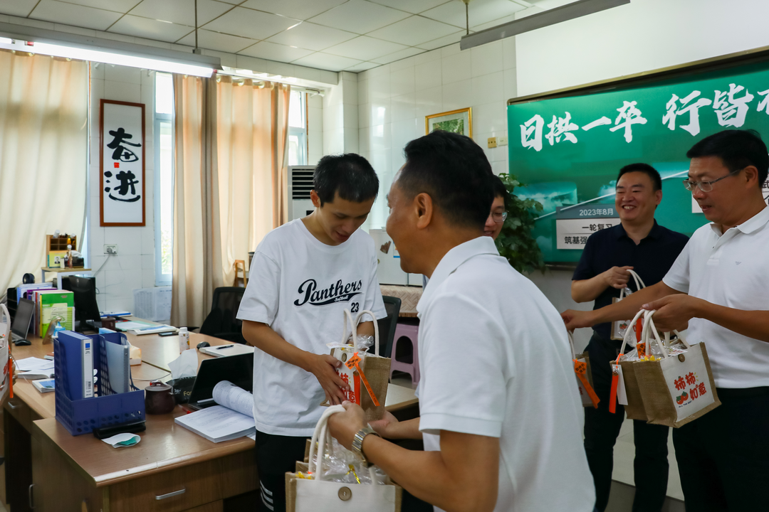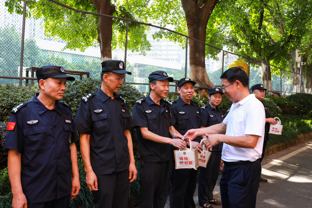 慰问组一行先后来到一教楼、二教楼、三教楼、校门、食堂、宿舍、医务室、行政楼、总务处为教职工派送节日礼品并对各部门情况和工作成效给予肯定,并提出殷切期望,鼓励教职员工发扬兢兢业业、无私奉献的优良传统,扎根基层、爱岗敬业静心教书、潜心育人,共同推动学校教育事业蓬勃发展。