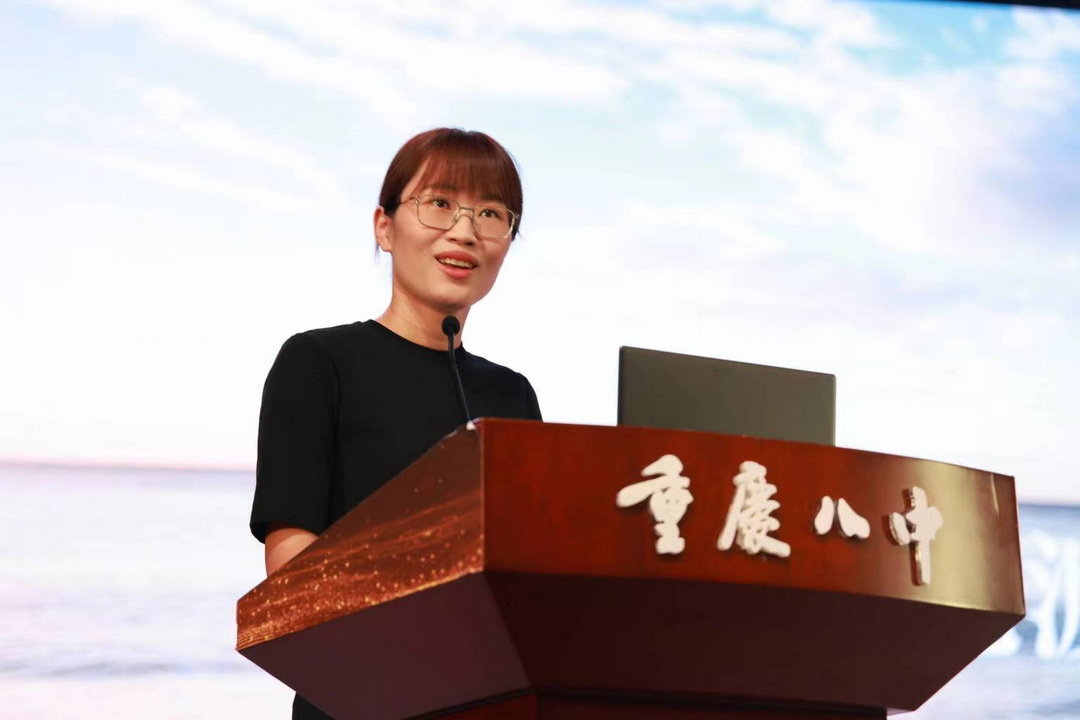 接下来,高2024级英语老师——袁霜霜老师进行题为“渡己先渡心”的演讲。