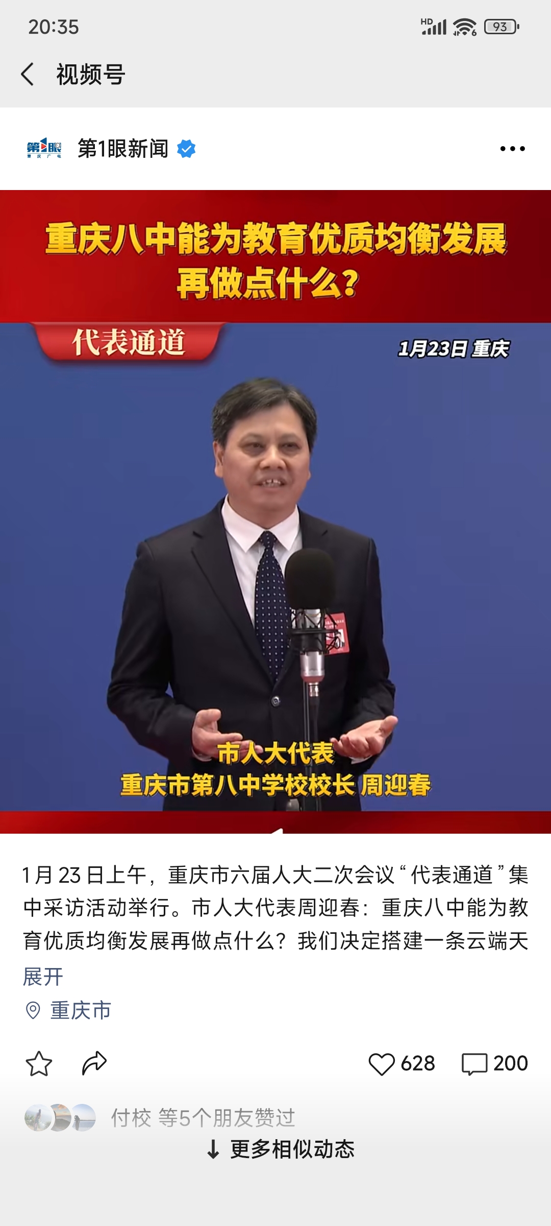 第1眼新闻——市人大代表周迎春:重庆八中能为教育优质均衡发展再做点什么?
