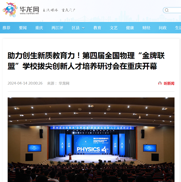 华龙网讯(郭晓彤)4月13日,融合共创教育新时代——第四届全国物理“金牌联盟”学校拔尖创新人才培养研讨会在重庆召开。来自清华大学、北京大学、浙江大学等多所高校的专家教授,以及全国50余所中学的师生齐聚重庆八中渝北校区,在为期5天的时间里通过专家论坛、学术交流和竞赛现场比赛等方式,共同探讨新时代拔尖创新人才培养模式。