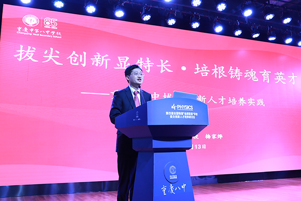 重庆八中副校长梅家烨作重庆八中拔尖创新人才培养实践分享。学校供图 华龙网发