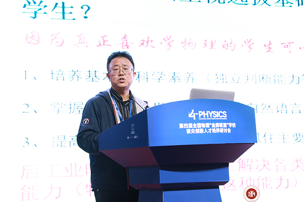 清华大学教授阮东以《拔尖人才培养之“攀登计划”与“强基计划”》为题,介绍了清华大学物理系关于拔尖创新人才培养的理念。他提到,叶启孙、杨振宁、朱邦芬三代物理学家为清华大学物理系的人才培养发挥了巨大的引领和育人作用。