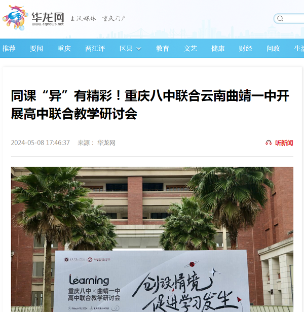 华龙网讯(郭晓彤 实习生 张永梅)课堂教学是育人主阵地。不同的老师上同样一节课会碰撞出怎样的火花?5月7日-10日,重庆八中和云南曲靖一中高中联合教学研讨会在重庆八中渝北校区举行。