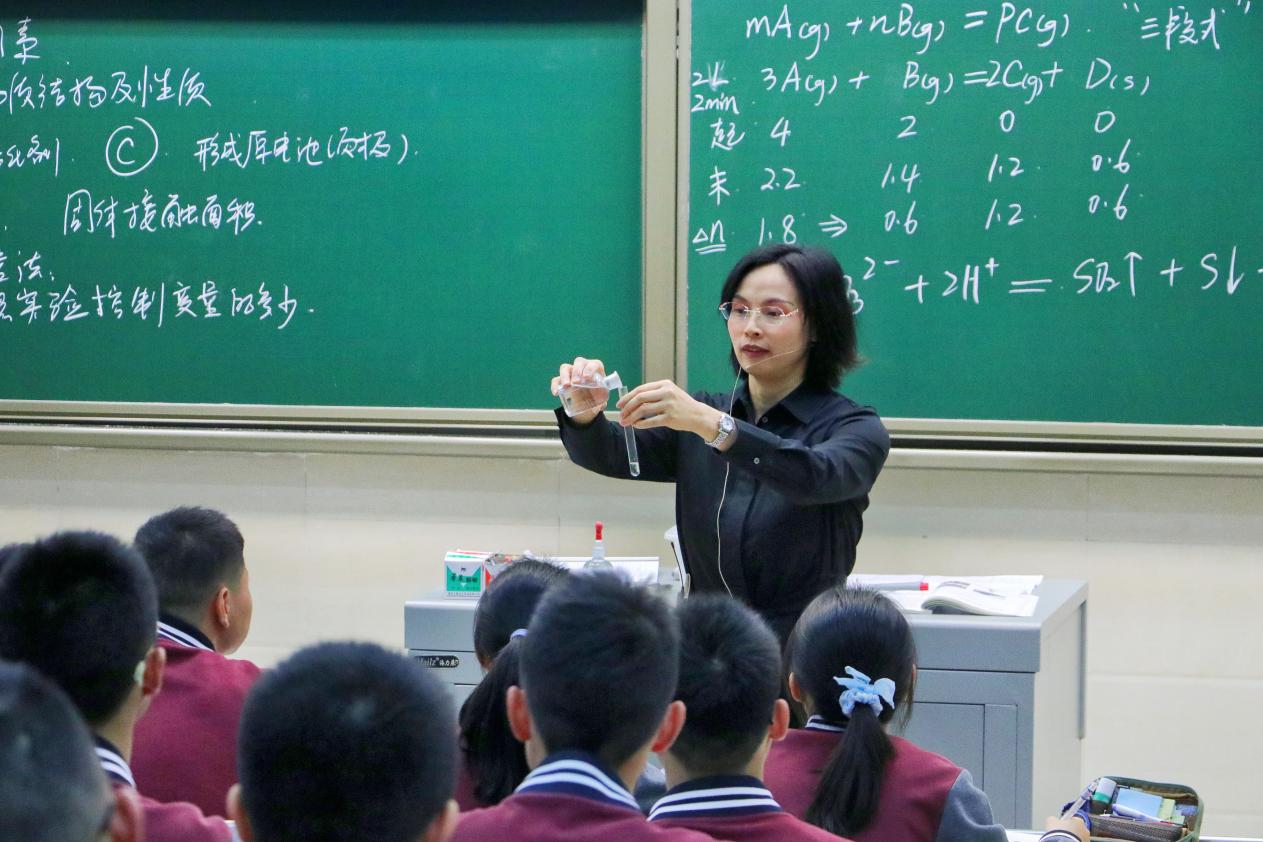 重庆八中高一化学教师何远华进行课程展示现场。实习生 张永梅 摄