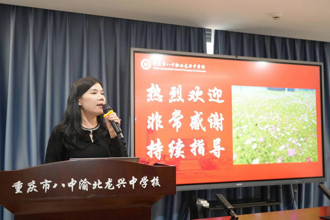 在精彩分享后热烈的掌声中,重庆八中副校长、八中龙兴中学付英校长即兴做了热情洋溢的讲话,为各位莅临的专家颁发聘书并表达了感谢,并就八中龙兴中学校开办以来的发展概况作了介绍。她希望全体老师接续奋斗、点亮八中龙兴!前路漫漫亦灿灿!让我们一起努力,为八中品牌奋勇拓新、增光添彩!