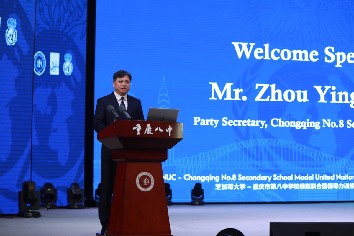 “在过去的一周里,模联大会举行前,重庆八中和其他学校的学生们在模拟联合国训练营中学习了公众演讲、国际外交和领导力等重要课程。本周末,学生们将扮演外交官的角色,共同解决一些最紧迫的国际问题。”芝加哥大学模拟联合国大会秘书长Marcos Lopez II在致辞中表示,如果让我给你们一个建议,那就是——敢于冒险,勇于接受失败!模拟联合国的意义不在于获胜,而在于齐心协力,成为一名能够团结他人的领袖。