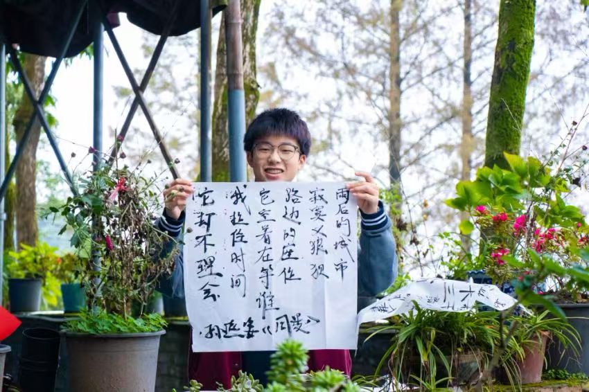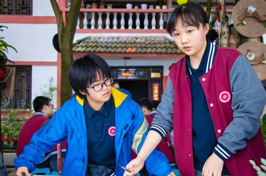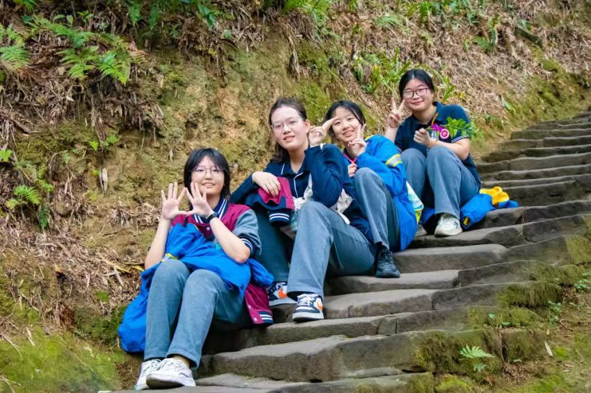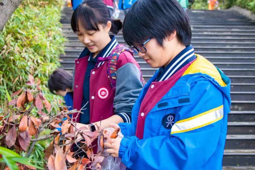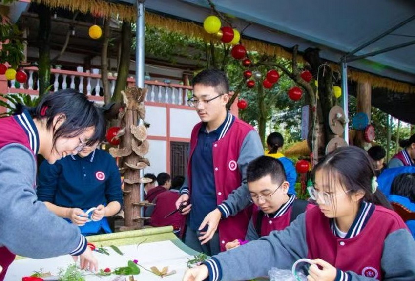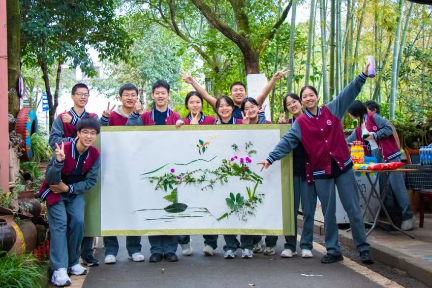 下午,同学们转战缙云山,进行了艺术心理培训课。在大自然的怀抱中洗涤心灵,通过寻找著名教育家黄炎培先生的足迹,感受和学习名人精神。同学们通过笔墨纸砚将这些美好记录下来,在诗词中去感受名人精神,学习名人心境。艺术心理培训还包括感受大自然的美,同学们分小组在长卷上绘画“我心中的缙云山”,用纯真的心灵和丰富的想象,共同绘制出心中缙云山最美好的样子。一幅幅充满诗情画意的蓝图,治愈每个同学的心灵,埋下纯净心灵的种子,期待育出成长之树,开出快乐之花。
