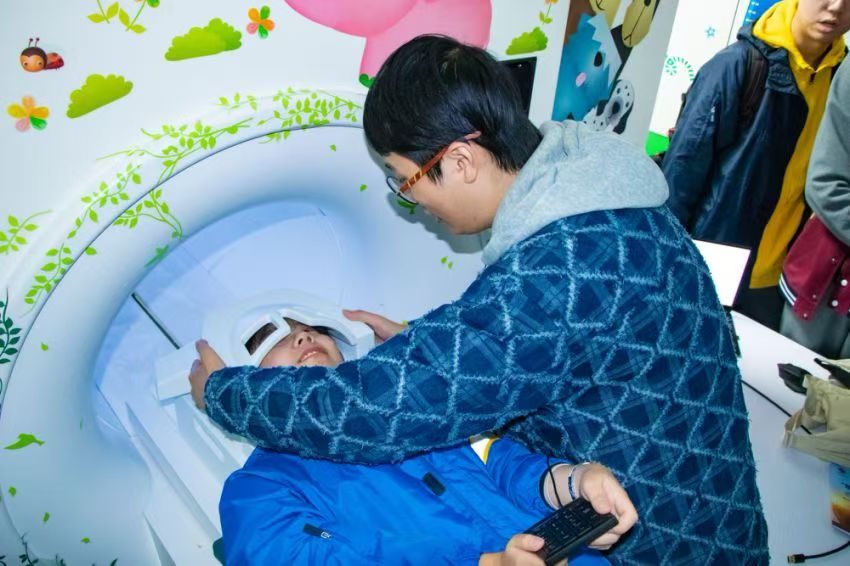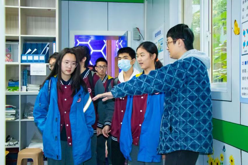 上午,同学们首先来到了西南大学心理学部,参观了心理学部的实验设施,并体验了心理学趣味实验。在脑成像中心,同学们亲眼看见了自己的大脑影像,学习了磁共振技术的基本原理和操作方法,深入了解了自己身体的各项指标,并与自己的大脑影像合影留念。在行为实验室,学生们体验了行为稳定测试仪、增强现实(AR)、虚拟现实(VR)、智能双手协调仪等心理仪器,探索了心理科学的多维度。动物实验室的参观让同学们体验到了实验室的氛围和动物实验的流程,了解了动物与心理科学的紧密联系。