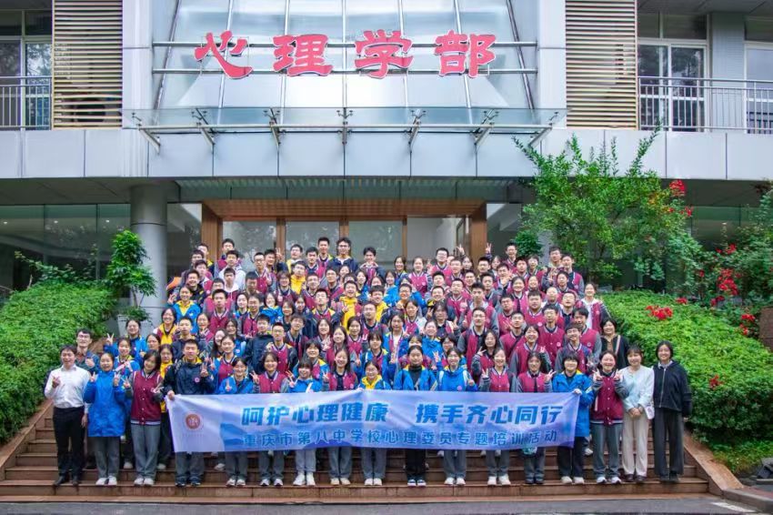 2024年11月9日,我校高一高二年级全体心理委员、部分班干校干共100余人前往西南大学心理学部进行以“呵护心理健康,携手齐心同行”为主题的心理委员专题培训活动。此次活动的核心目标是强化心理健康教育,提升心理委员对心理知识的掌握和理解,普及心理健康知识,并激发学生间的互助精神,共同构建班级心理支持体系。各班班长及心理委员们在重庆八中学生心理与生涯发展指导中心副主任王强等人的带领下,开启了对“心理学的世界”的探索之旅。