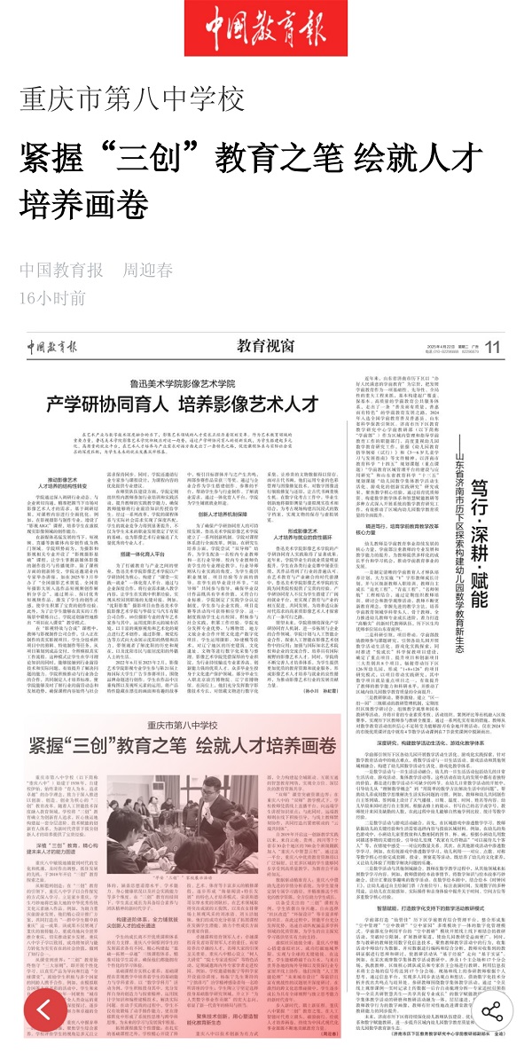 步入新时代,踏上新征程。重庆八中紧握“三创”教育之笔,在人工智能时代勇立潮头,破浪前行,绘就人才培养画卷,持续为中国式现代化事业源源不断地贡献教育力量。