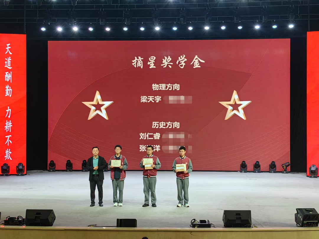 “星光不问赶路人,时光不负追梦人”,部分同学在求知的路上步履不停、披荆斩棘,终将汗水化作了闪耀的成绩。本次表彰授予梁天宇、刘仁睿、张海洋三位同学“摘星奖学金”,由付晓勇老师为他们颁奖。