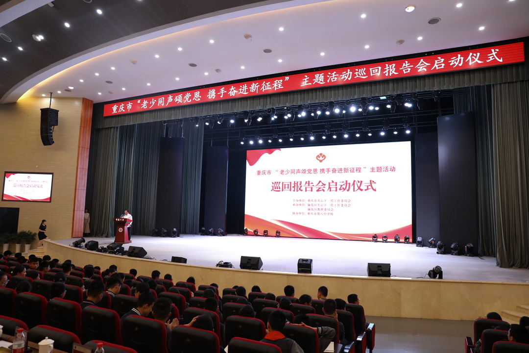 5月12日,重庆市“老少同声颂党恩 携手奋进新征程”主题活动巡回报告会启动仪式在我校渝北校区举行。重庆市关工委、渝北区关工委领导,报告团专家及重庆八中师生代表共1100余人参会。