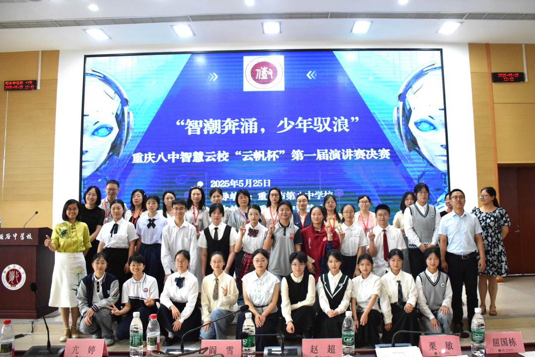 2025年5月25日,“智潮奔涌,少年驭浪”重庆八中智慧云校“云帆杯”第一届演讲赛决赛,在重庆八中数据谷中学举行。重庆八中数据谷中学党支部书记、校长陈仁贵,重庆八中智慧云校副校长屈国栋、教学主任栗敏出席活动。