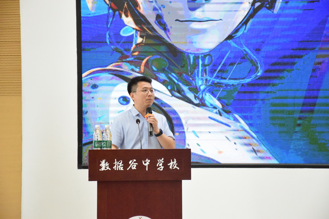 重庆八中数据谷中学党支部书记、校长陈仁贵致辞,首先对进入决赛的选手表示祝贺,并向来宾介绍“云帆杯”寓意。他表示,本次活动是希望少年们面对人工智能浪潮,既能拥抱变革,又能保持独立思考。此外,他表达了对选手们的三点期待:第一,做“有温度的思考者”;第二,做“有想法的创新者”;第三,做“有格局的实践者”。