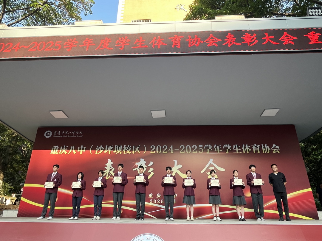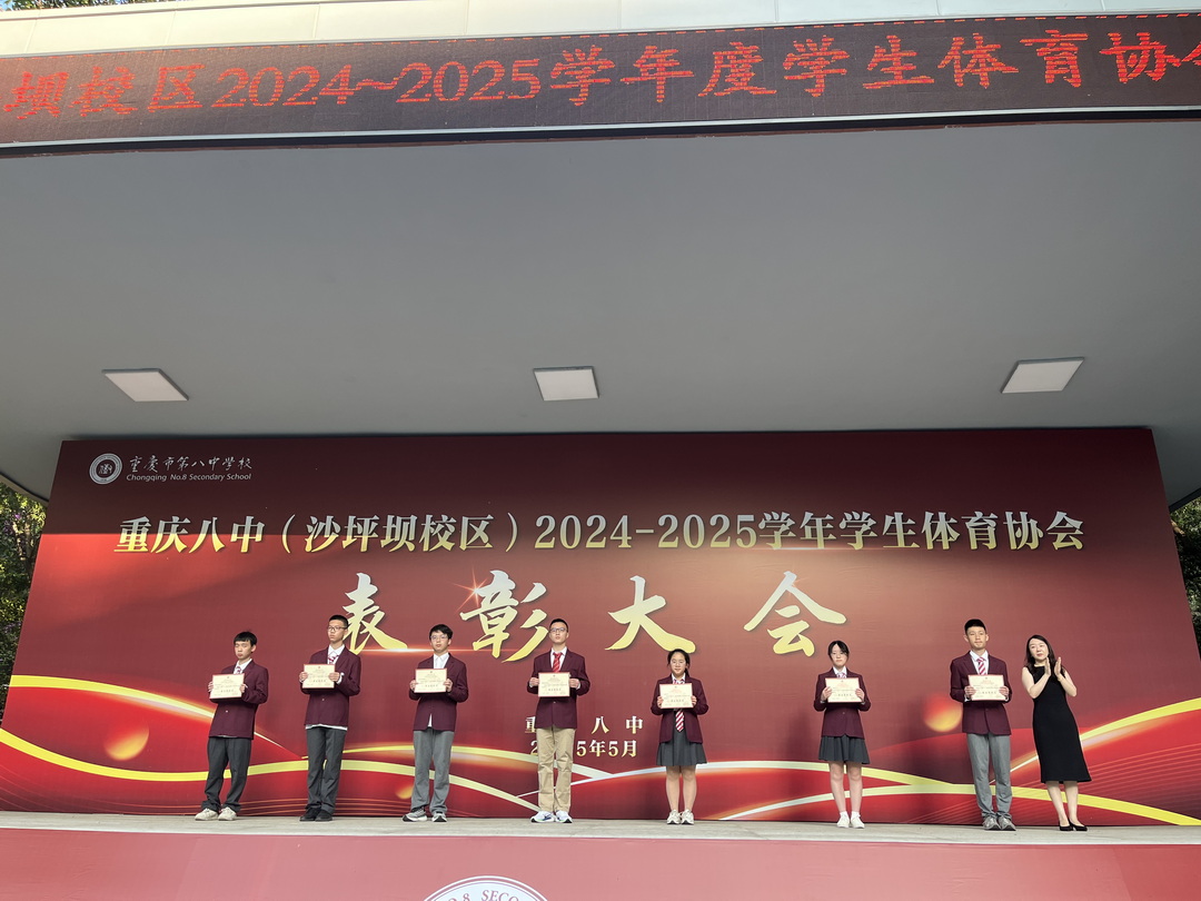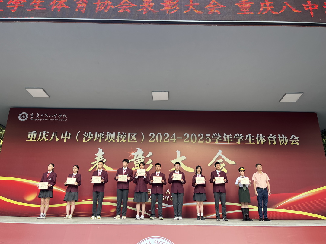 5月26日清晨,重庆八中沙坪坝校区朝会现场气氛热烈而庄重,2024-2025学年学生体育协会表彰大会在此隆重举行。此次大会旨在嘉奖过去一学年在体育活动中表现优异的个人和集体,激励全校师生传承体育精神,全面落实"五育并举"教育理念。