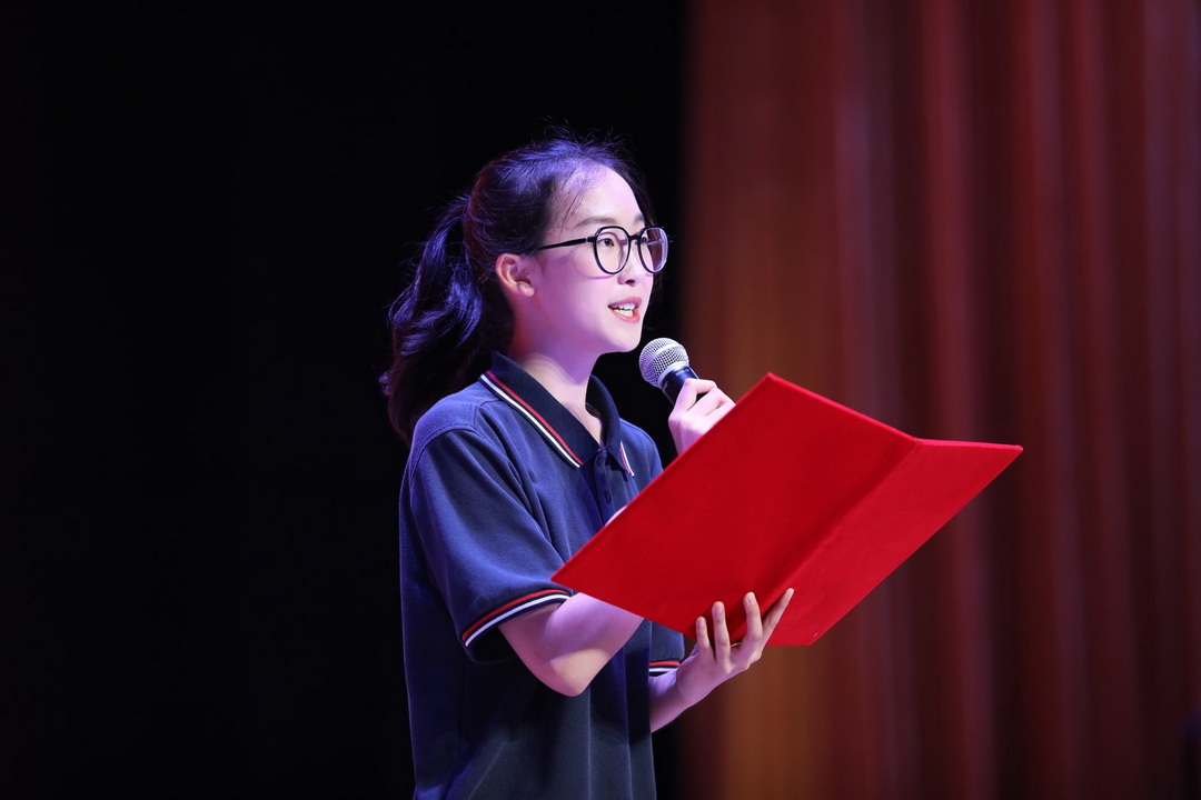 初三(3)班李金阳同学带来青春独白——《从两江八中到星辰大海》,那些关于初中三年足迹的刻痕,关于师生回响的余温,关于照亮未来的璀璨星光,都在此刻汇聚成少年最真挚的告白。