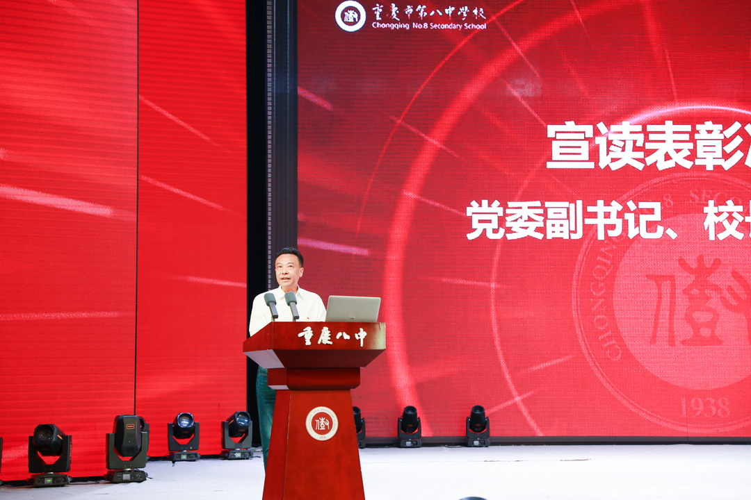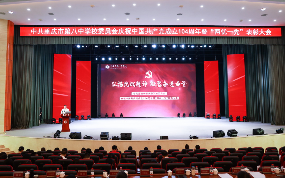 2025年7月6日,中共新利体育登录入口官网 委员会庆祝中国共产党成立 104 周年暨“两优一先”表彰大会。此次大会以“弘扬抗战精神,凝聚奋进力量”为主题,旨在回顾党的光辉历程,表彰先进典型,激励全校党员师生不忘初心、牢记使命,在新时代新征程中奋勇前行。重庆八中全体党委委员、重庆八中教育集团近700名党员参加此次会议,党委副书记王怒涛主持大会。