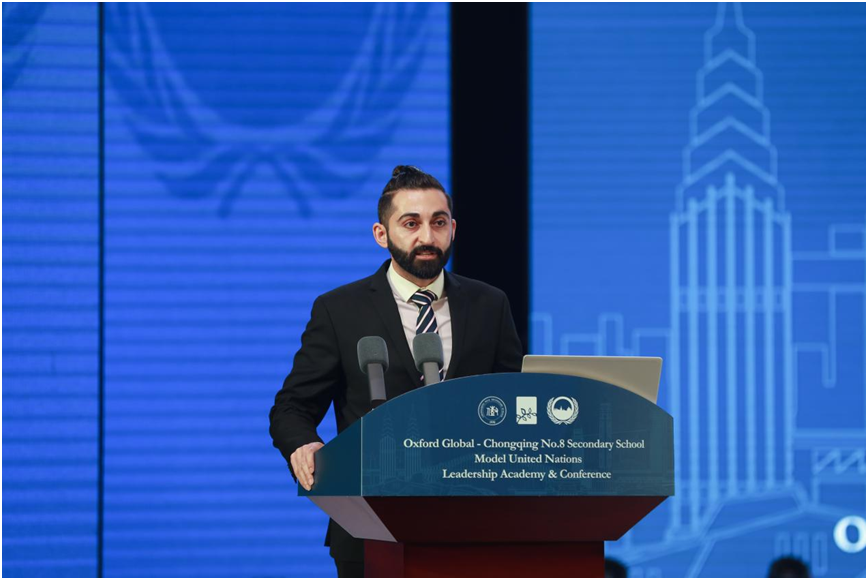 牛津大学模拟联合国大会秘书长ErfanSoliman致辞(摄影 徐浩)