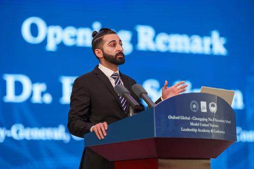 ▲7月14日,重庆八中渝北校区,牛津大学模拟联合国大会秘书长Erfan Soliman致辞。记者 李雨恒 摄