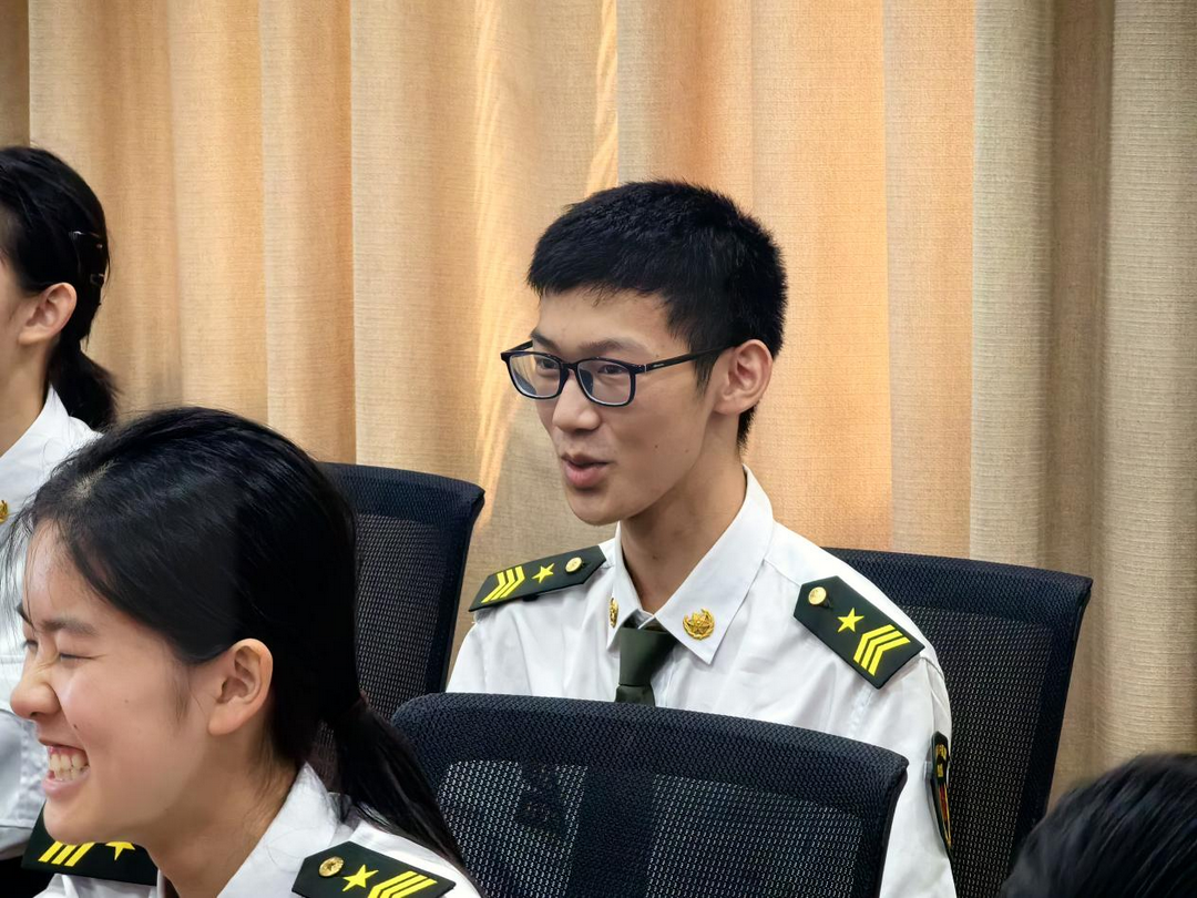 仪式伊始,第二届仪仗队纪律委员王骁学长以“热爱、珍惜、奋斗”三字寄语后辈:强调热爱是坚守初心的基石,珍惜天安门国旗的荣光与队员身份的珍贵,更要以奋斗将个人理想融入家国情怀,为后辈指引方向。