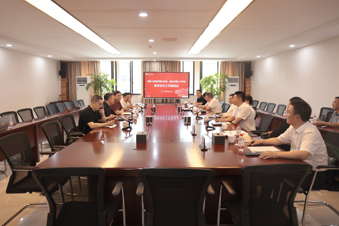 7月10日,酉阳县、重庆八中教育合作工作座谈会在我校渝北校区召开。出席此次会议的领导有:酉阳县委书记杨通胜,县委副书记、县长陈政,县委副书记、县委教育工委书记水韦梁,县委办公室主任郭奉恭,县政府办公室主任周伟,酉阳县委教育工委副书记、县教委主任凡顶,酉阳县委教育工委委员、县教委副主任罗昌生,酉州高级中学党总支副书记、校长唐小兵。重庆八中党委书记、重庆八中教育集团总校长周迎春,重庆八中党委副书记王怒涛,重庆八中党委委员、副校长张泽勇,重庆八中教育集团校长助理、渝北校区副校长、智慧云校校长周明,重庆八中办公室副主任刘凯。会议由张泽勇副校长主持。