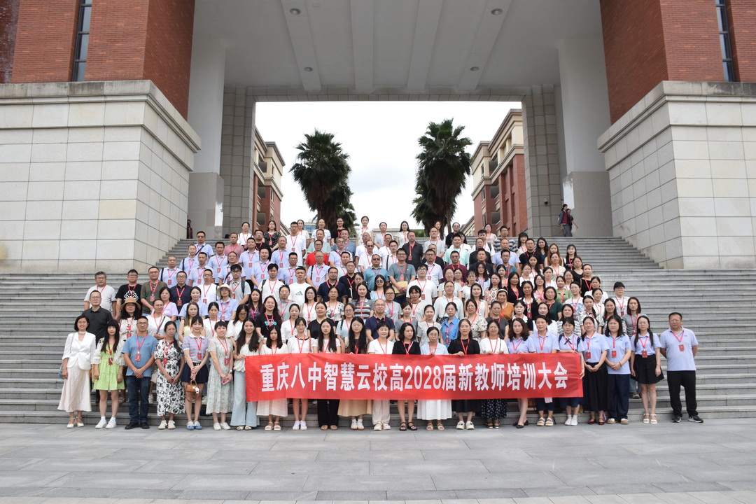 2025年8月23日,八中云校高2028届新教师培训大会在八中渝北校区举行,重庆八中教育集团校长助理、渝北校区副校长、云校校长周明,云校副校长屈国栋及联盟校教师共计200余人出席大会。大会开启同步直播,线上观众约400人。