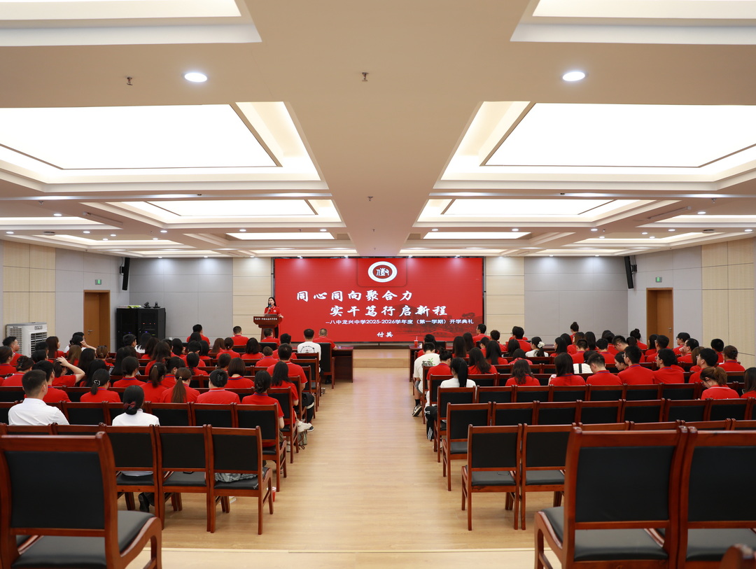 校园溢彩,朝气满盈。为鼓舞全体教职工以充沛的热情和高昂的斗志迎接新的学期,2025年8月28日下午,八中龙兴中学于图书馆5楼会议室举行主题为“同心同向聚合力,实干笃行启新程”的开学典礼。付英校长、贺先进副校长出席会议,全体教职员工参会。