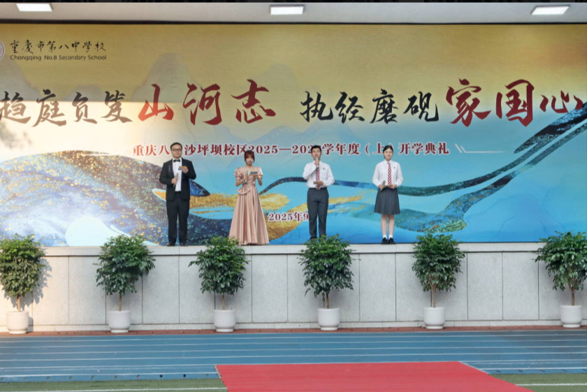 2025年9月2日,“趋庭负笈山河志 执经磨砚家国心”重庆八中沙坪坝校区2025-2026学年度(上)开学典礼成功举办。重庆八中党委书记、重庆八中集团校总校长周迎春老师,重庆八中党委副书记、校长卿知人老师,重庆八中工会主席王怒涛老师,重庆八中副校长、八中龙兴中学校校长付英老师,重庆八中副校长张泽勇老师,重庆八中副校长梅家烨老师,重庆八中副校长、八中科学城中学党委书记曾奇老师,重庆八中沙坪坝校区副校长李明老师以及沙坪坝校区全体师生参加了本次开学典礼。