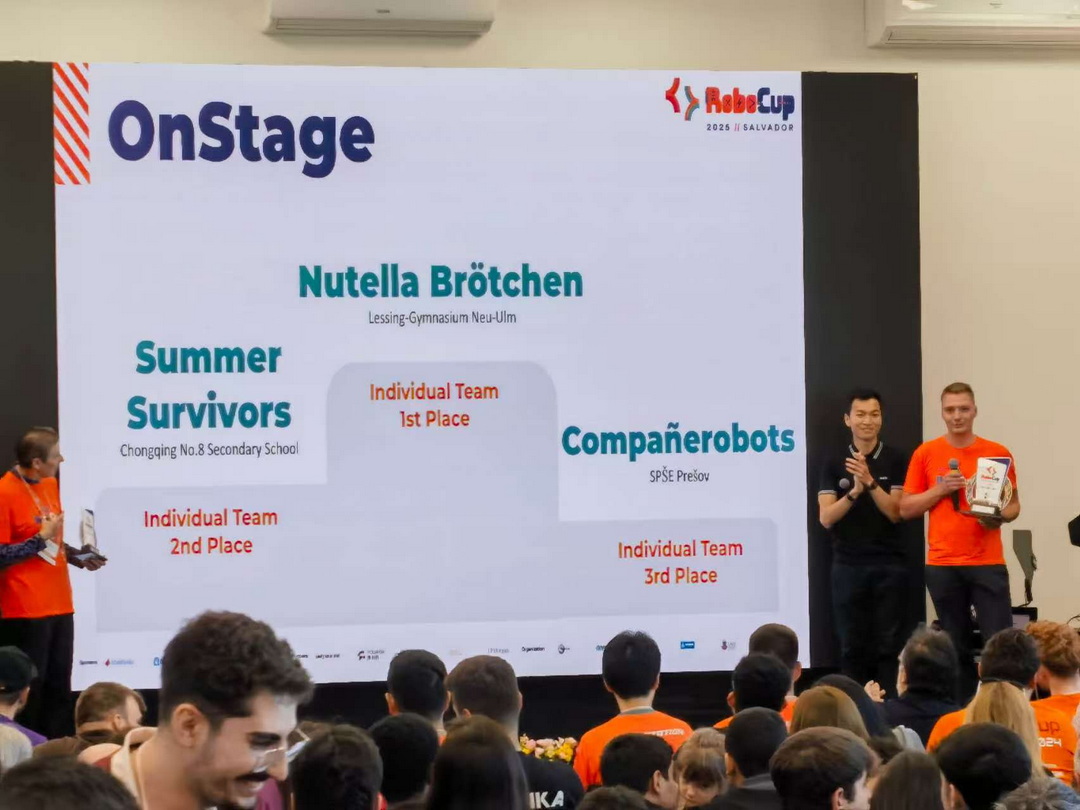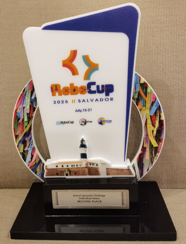 近日,在巴西萨尔瓦多举办的2025RoboCup机器人世界杯中,我校高2027届学生赵梓铎、唐崧耀、黄宇峣、彭楚寻,初2026届学生温淳睿,在克服了长途旅行、器材损坏、现场任务复杂等一系列障碍后,利用自己在一年多时间中积累起来的技术和制造的机器人,完成了现场表演、技术答辩等项目,根据评委的要求重制了展示视频并改进了演出内容,获得中学组Onstage赛项世界杯总决赛亚军。