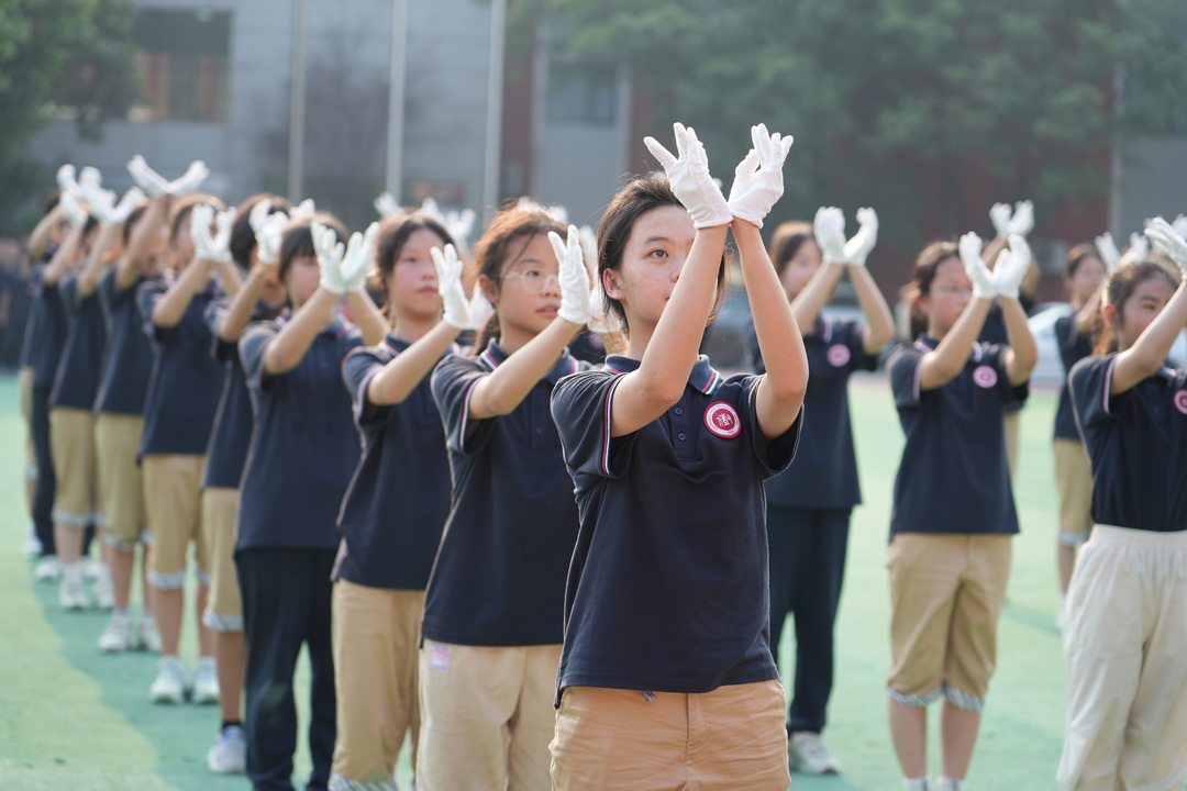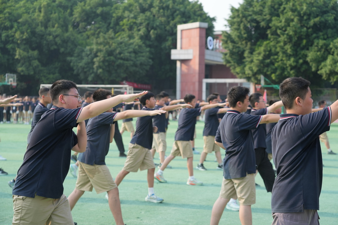 9月4日,闭营仪式在操场隆重举行。全场齐唱校歌,歌声嘹亮,唱出了对学校的深情与自豪。汇报表演中,各班依次展示训练成果,队列表演整齐划一,军体拳刚劲有力,赢得阵阵掌声。