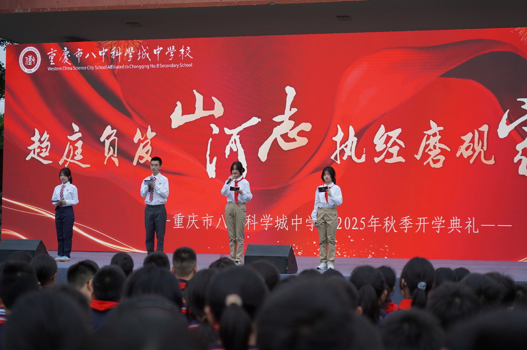 金秋送爽,华章再启。9月8日上午,重庆市八中科学城中学校隆重举行以“趋庭负笈山河志,执经磨砚家国心”为主题的2025年秋季开学典礼。典礼庄严而热烈,展现了八中科学城校区深厚的文化底蕴与蓬勃向上的精神风貌。